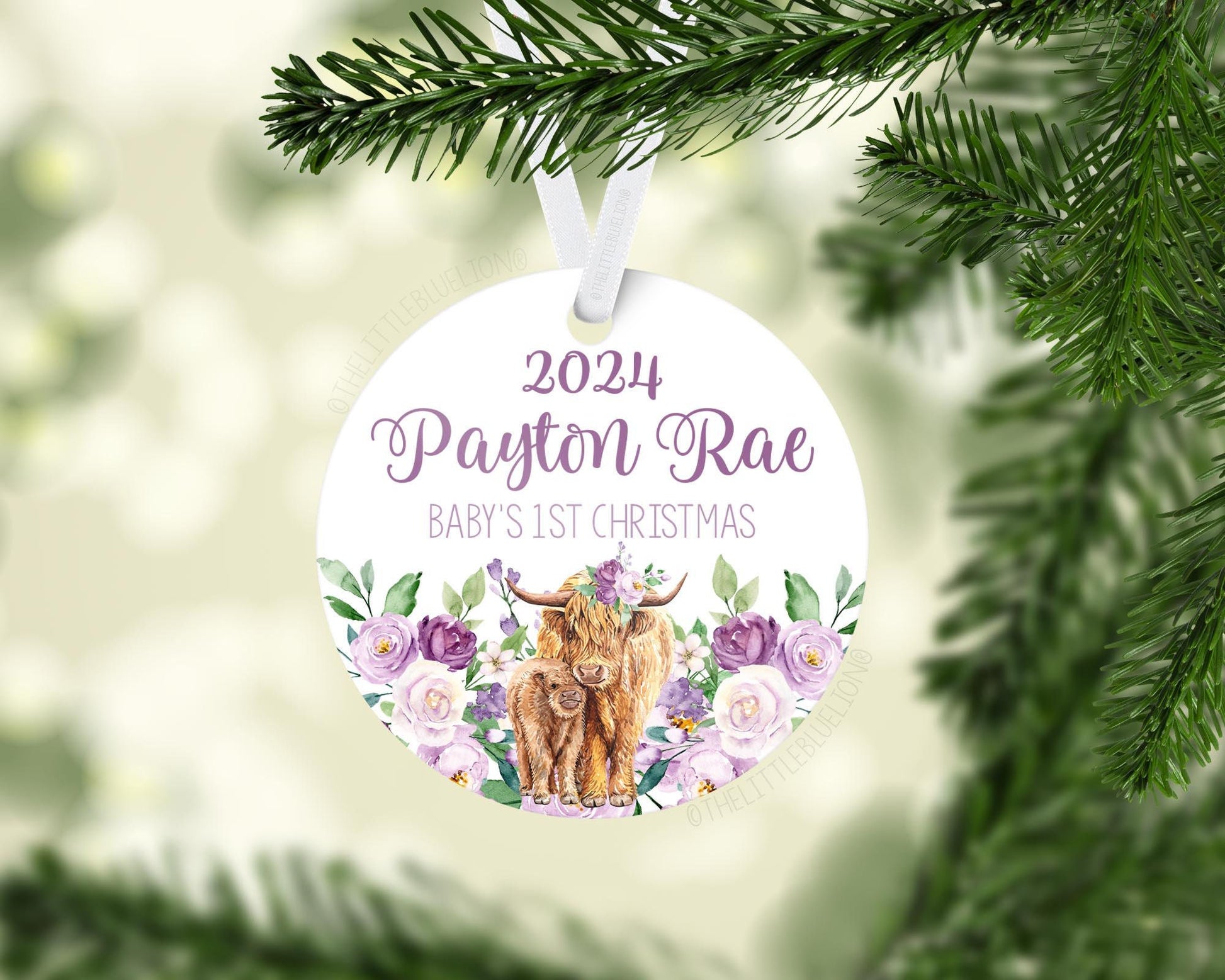 Girl Highland Cow Baby 1st Christmas Ornament, C19