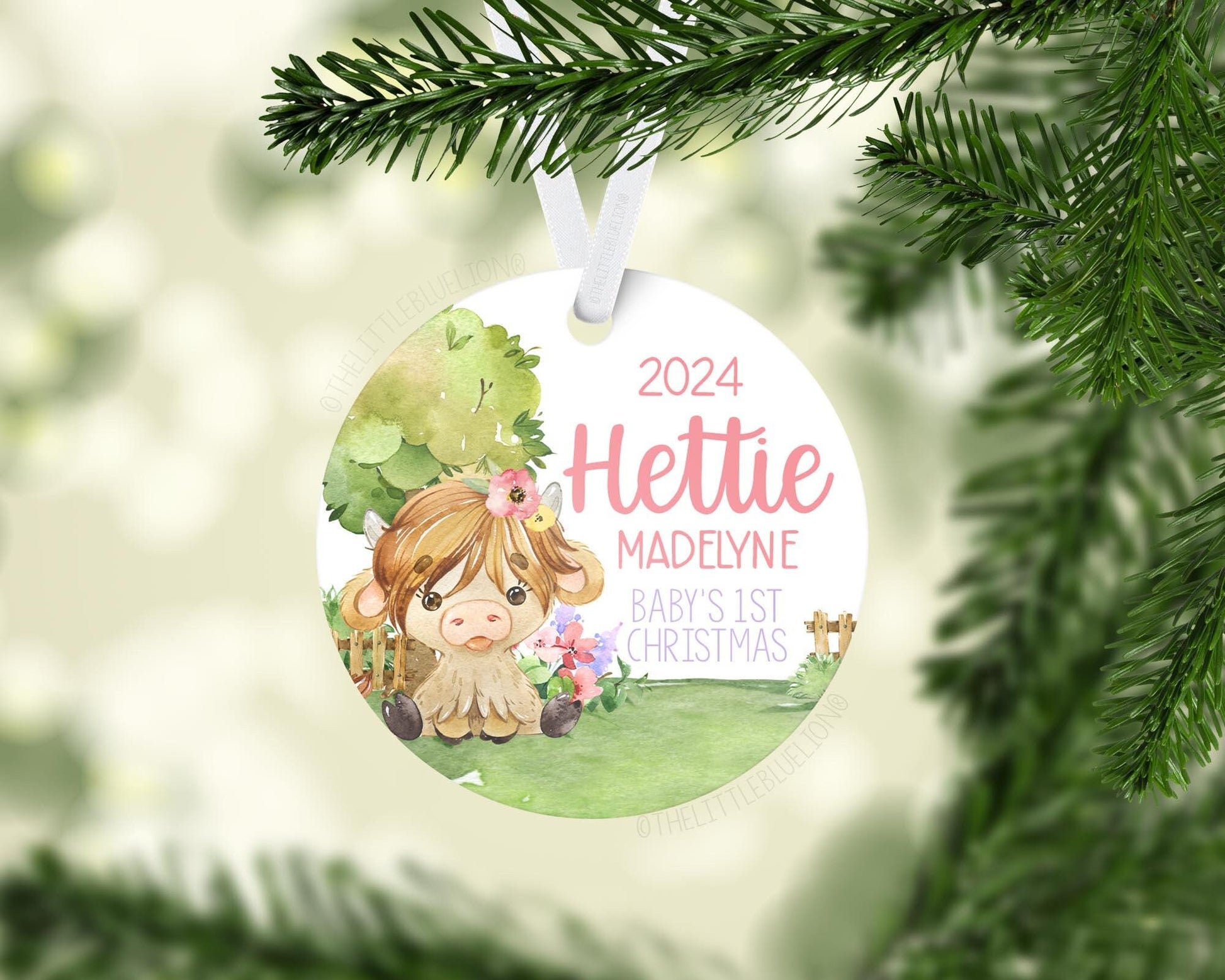Girl Highland Cow Baby 1st Christmas Ornament, C29