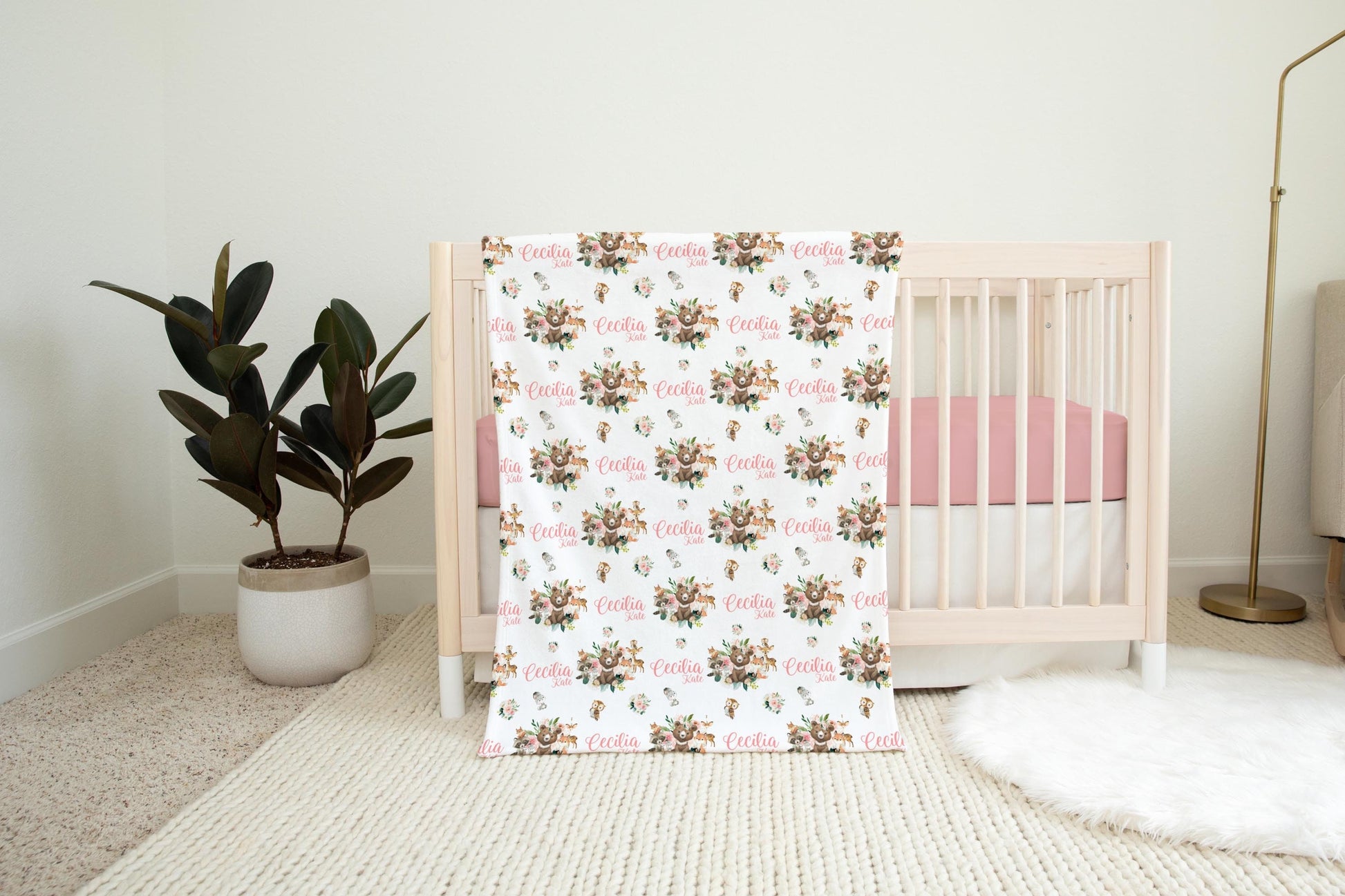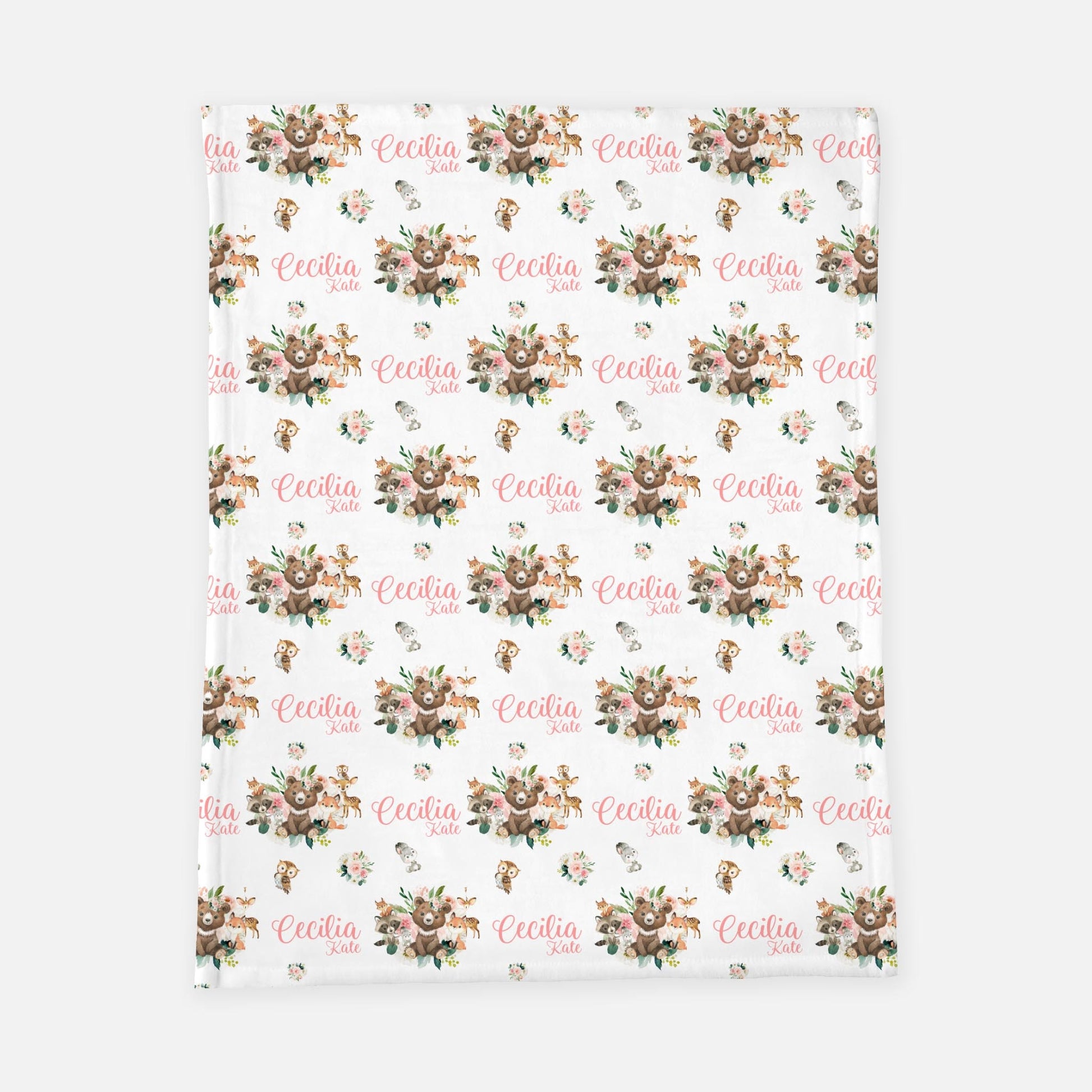 Girl Woodland Name Swaddle Blanket, Floral W28