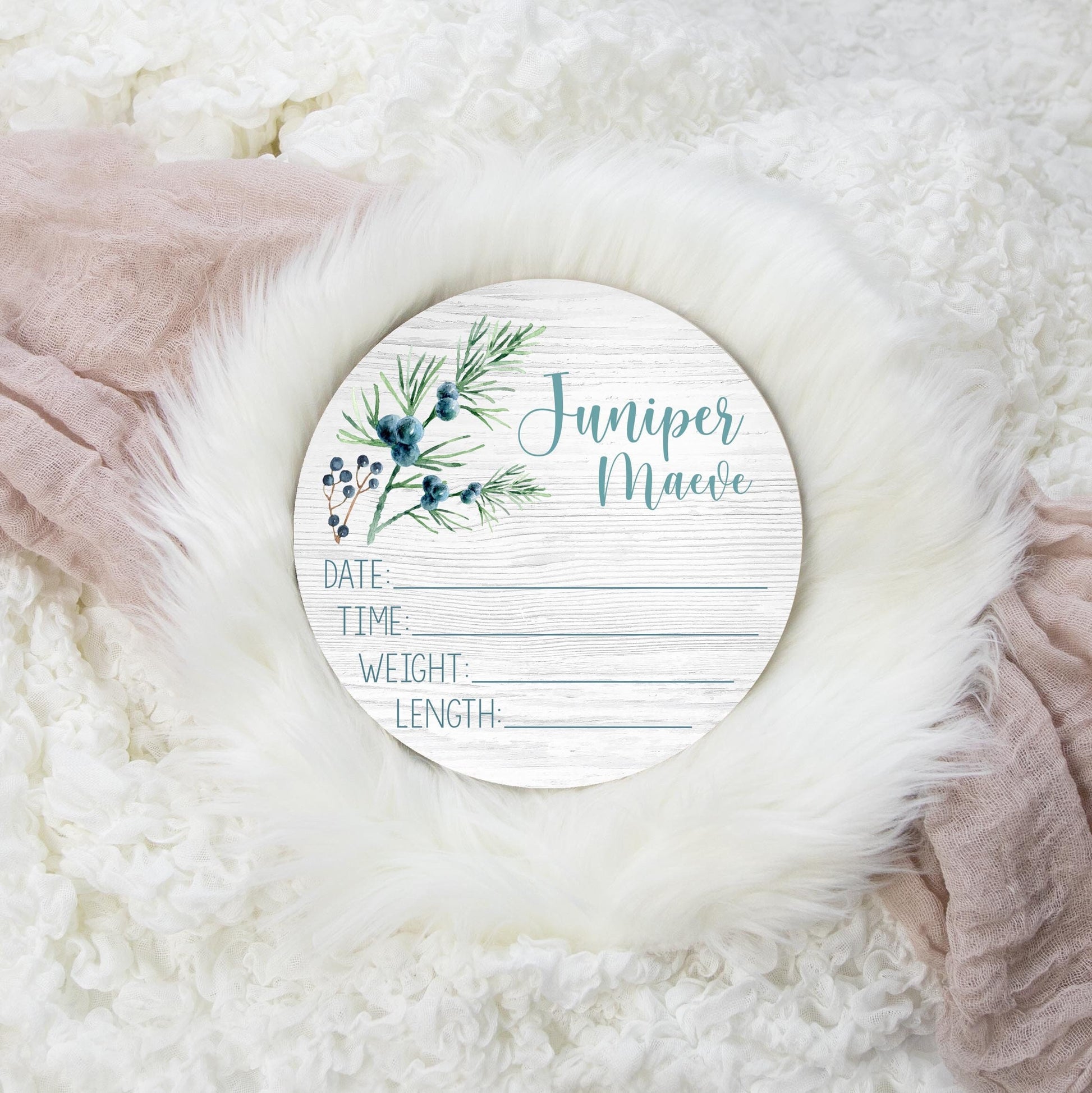 Juniper Girl Round Wood Birth Stat Sign, F74
