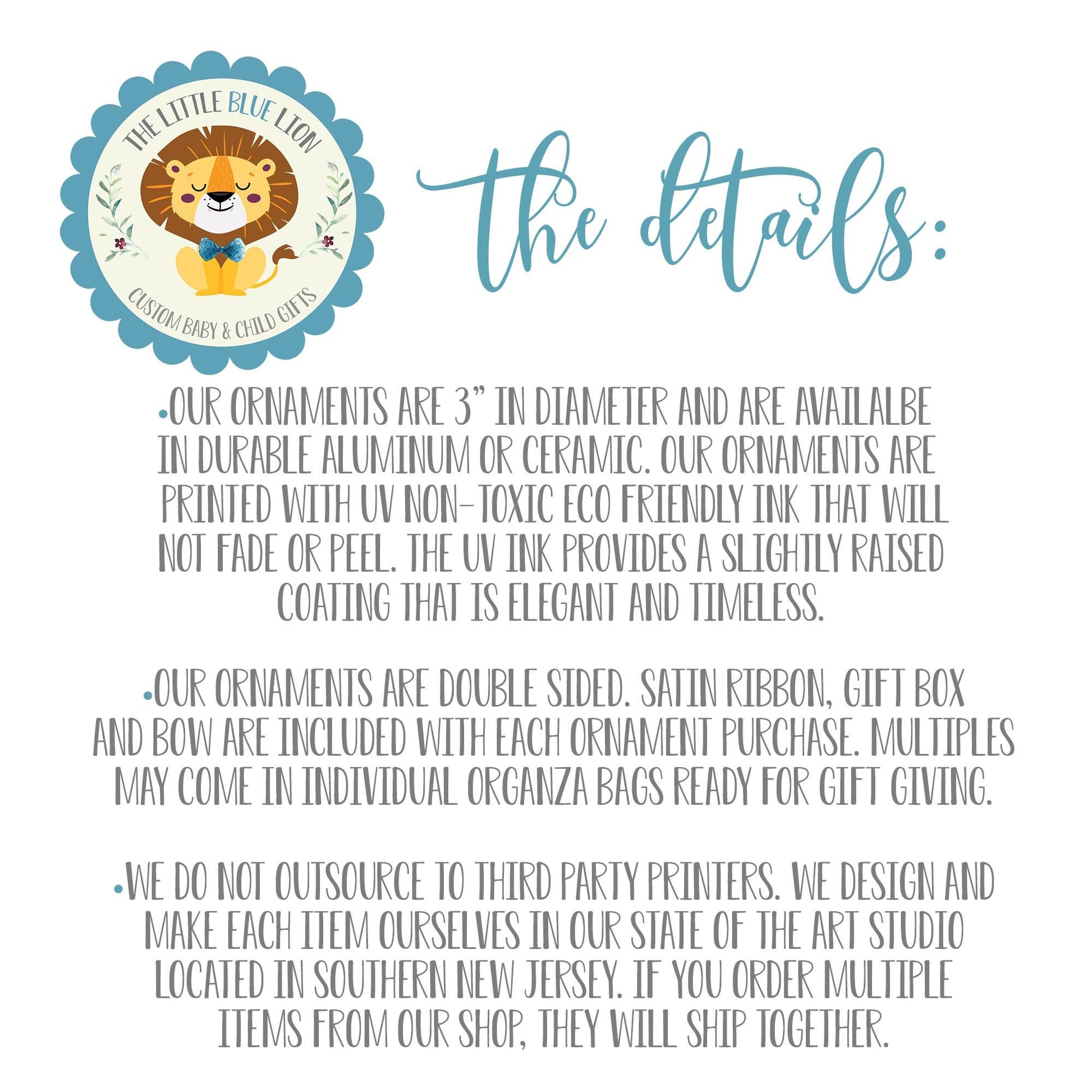 The Little Blue Lion® personalized ornament is the perfect gift or stocking stuffer to the beautiful new baby!