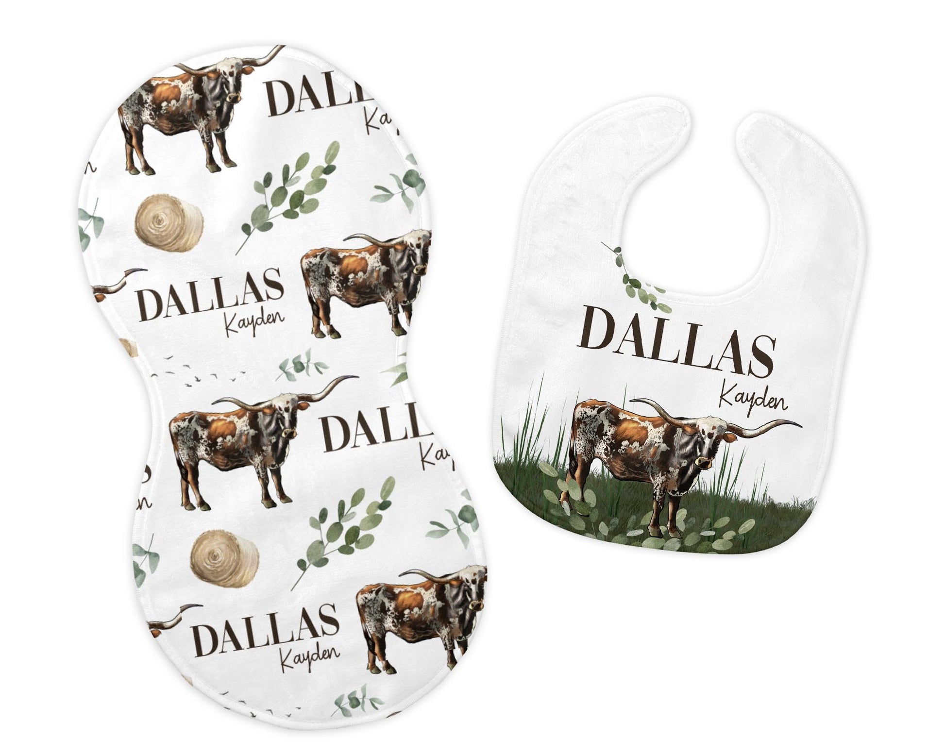 Longhorn Cow Bib and Burp Cloth Set, C30