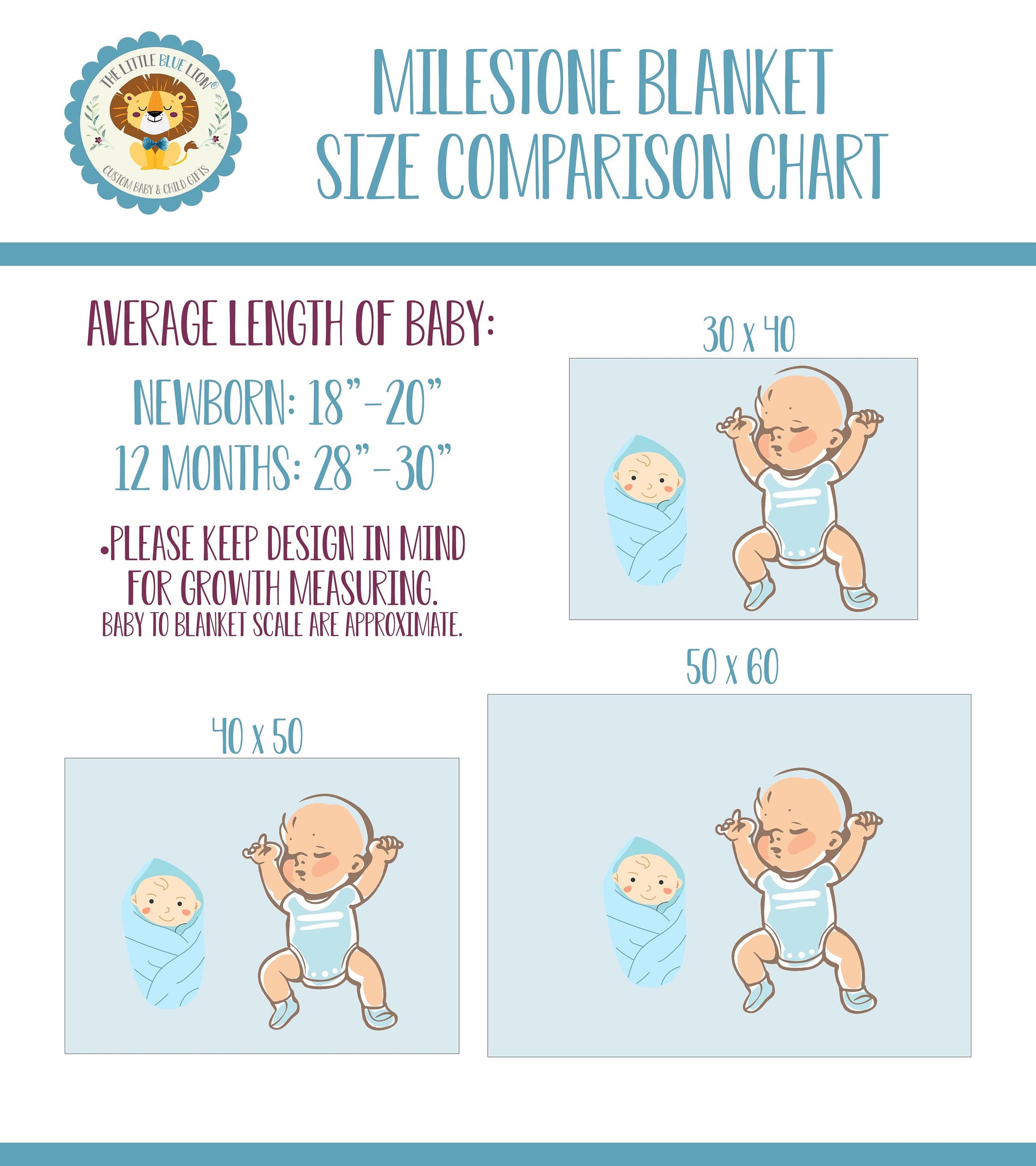 The Little Blue Lion® personalized super soft Minky or Sherpa blankets are the absolute perfect gift for any beautiful newborn baby! Track their growth with monthly milestone photos on either our 30x40, 40x50 or 50x60 blankets.