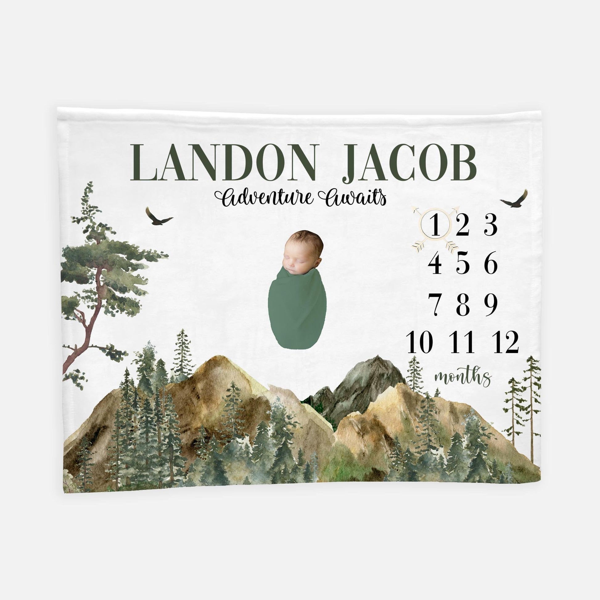 Mountains Baby Milestone Blanket, Adventure Awaits Boy W8