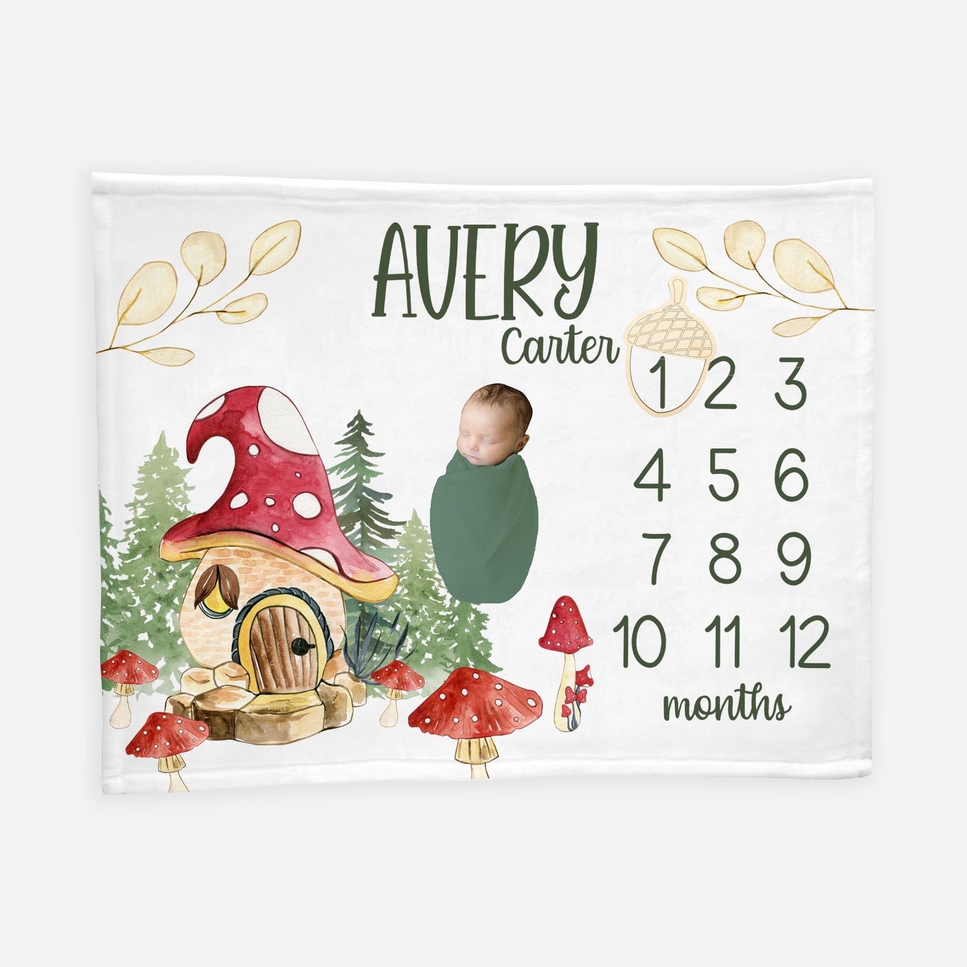 Mushroom Woodland Milestone Blanket, Baby Boy W43