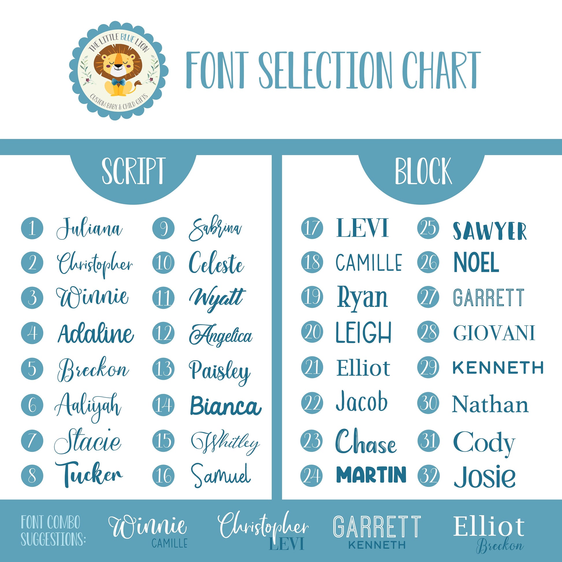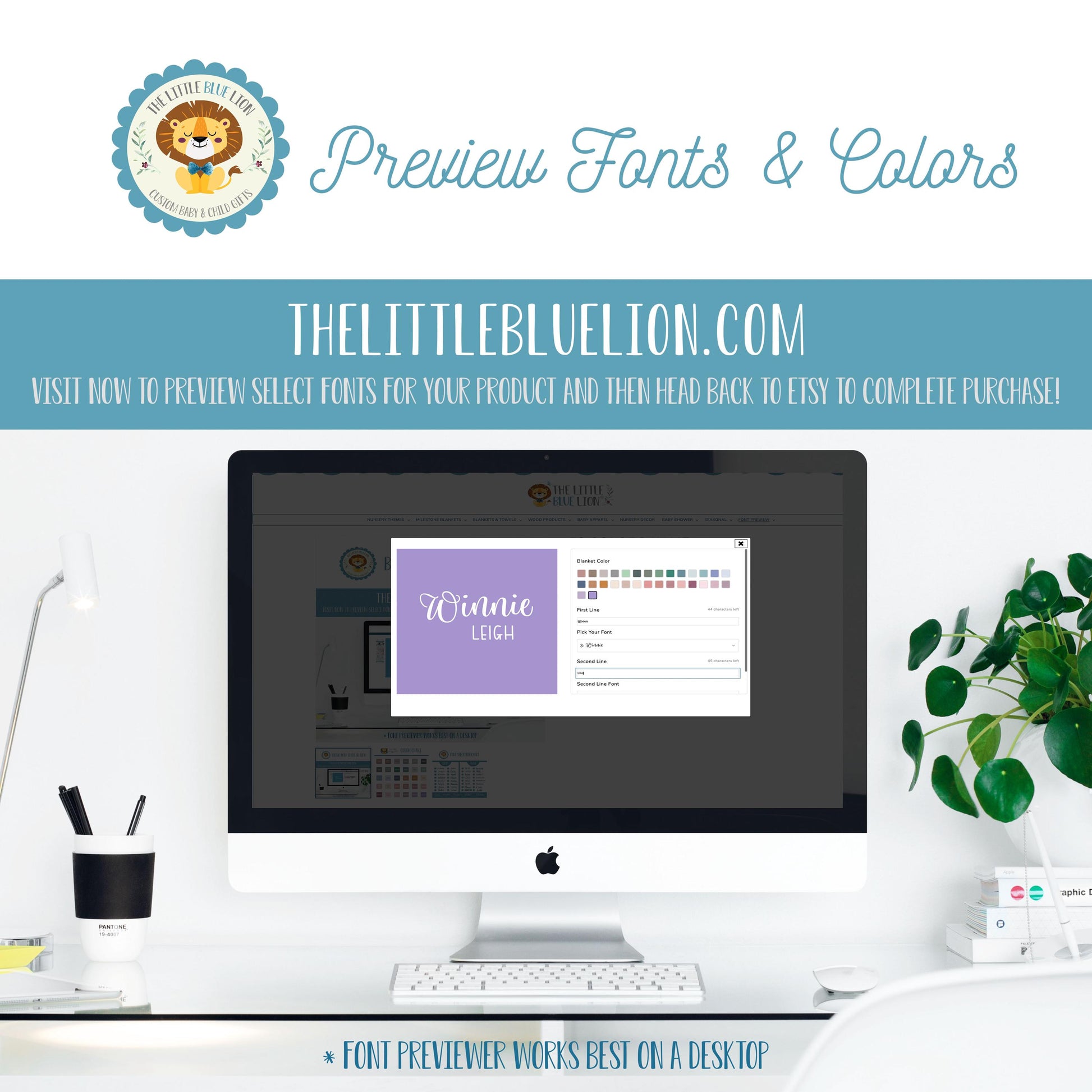 PREVIEW BLANKET COLOR & FONT: https://thelittlebluelion.com/products/30-colors-name-blanket-preview