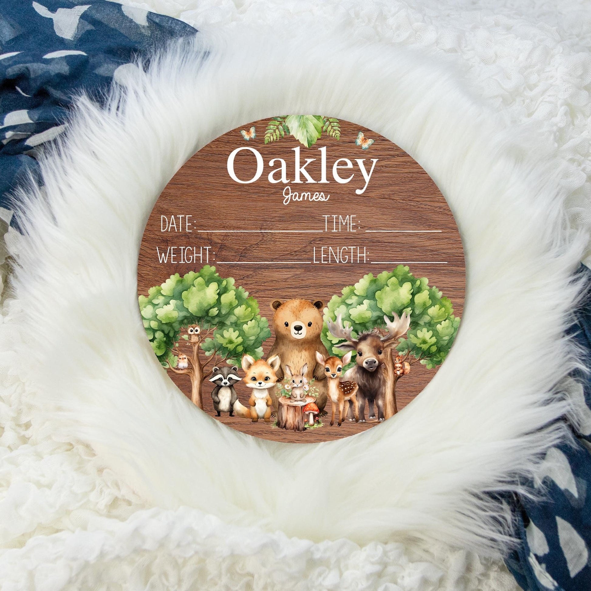 Woodland Birth Stat Sign, Round Wood Sign, W62